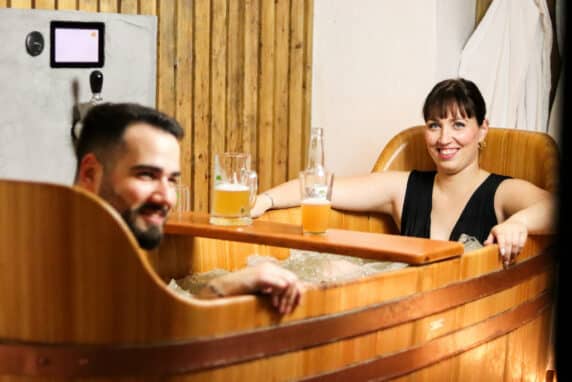Notre objectif était de casser les codes du spa traditionnel en ajoutant une touche conviviale, où les couples peuvent non seulement se détendre, mais aussi partager un moment autour d’une bière artisanale alsacienne. Nous avons lancé notre premier spa à Strasbourg il y a bientôt trois ans et 90% de notre clientèle est aujourd’hui composée de couples, avec une répartition égale entre hommes et femmes.